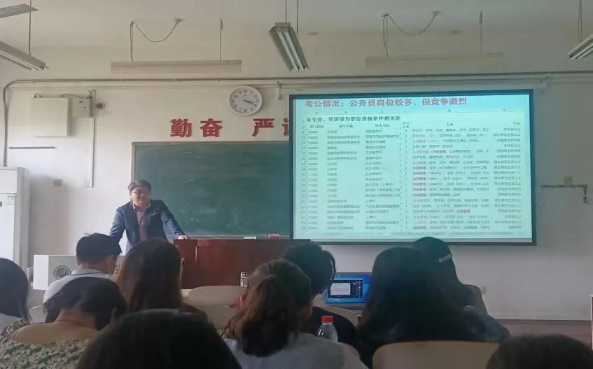 5月11日,公共管理大类专业分流宣讲会在1308教室召开,许琳老师、司林波老师和王淑珍老师为同学们介绍和讲解各个专业的具体情况。