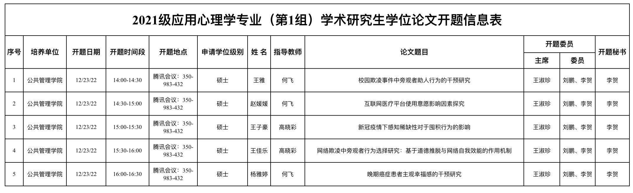 应用心理学第1组2021级开题安排表