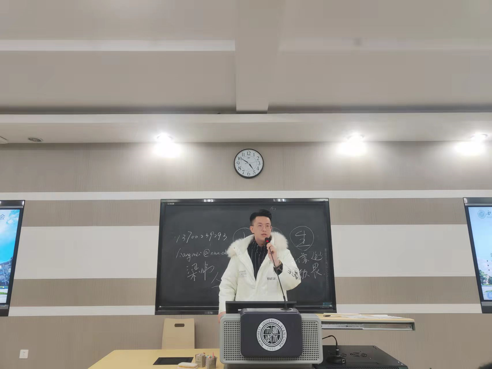 在大家的自我介绍之后,梁炜老师对同学们的发言进行了总结,从由“大”“学”“生”三个字引出的三个方面给同学们指导与建议。“大”是指同学们要有大的格局,大的视野与大的胸怀,要从成年人的立场来思考和解决问题。“学”则指同学们应当学会快乐,热爱生活,同时在不断实践中学会做人,学会做事。而“生”则应始终在保持谦逊的态度,保持对校纪校规的敬畏。同学们认真听讲,收获颇多。