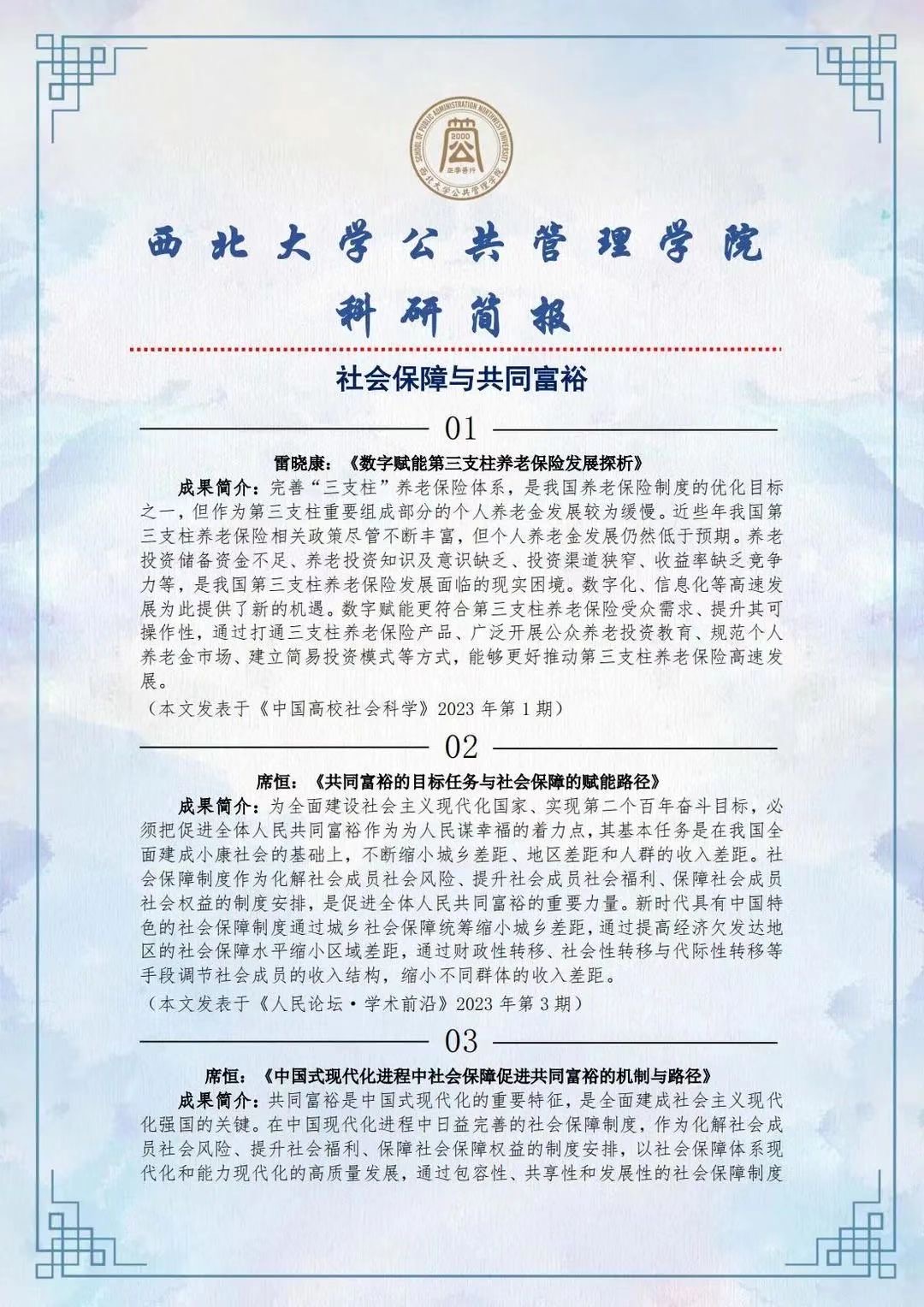 西北大学565net必赢2023年第一季度学术动态