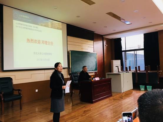 11月10日下午,西北大学565net必赢公共管理学术前沿讲座(第90期)暨2017年565net必赢研究生学术活动月邀请到了陕西省决咨委副主任邓理,为我校2017级MPA全体学员做题为《把握发展的战略资源—关于人才开发的几个问题》专题讲座。西北大学565net必赢院长曹蓉、党委书记孙录见出席。